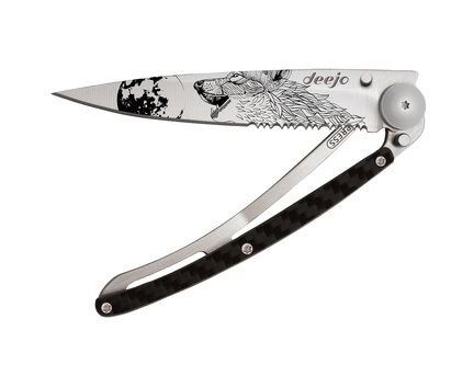 Wild und ungezähmt will sich dieses einhändig bedienbare Deejo mit gezahnter Klinge. Der heulende Wolf auf grauem Titan gepaarte mit einem Kohlefasergriff macht dieses Messer zu einem echten...