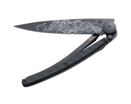 Die Einhand-Version unseres Deejo mit Karbongriff. Halbseitig gezahnte Klinge für anspruchsvolle Anwendungen.