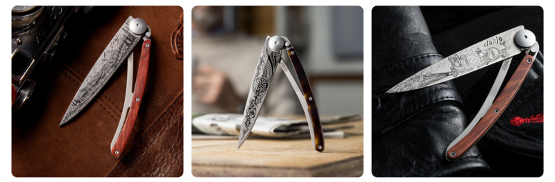 Für wahre Kenner gibt es bei Deejo Schätze, die man nicht verpassen darf. Da wäre zum Beispiel ein Taschenmesser mit 88-lagigem Damaststahl. Oder wie wäre es mit unserer limitierten Tour-de-France-Edition mit ihrem geprägten Lederetui. Für alle die es heiß mögen, dürfte unsere „Hüllenlos“ Edition genau das Richtige sein. Da werden die Bäckchen sicher rot!