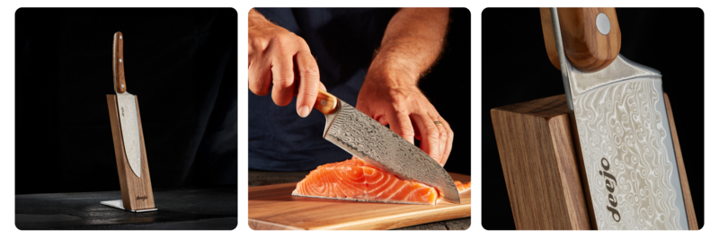 Deejo hat in diesem Jahr sein erstes Küchenmesser vorgestellt: ein Santoku aus Damaststahl, limitiert auf 2025 Exemplare. Geliefert wird es mit seinem eigenen, magnetischen Messerhalter. Ein außergewöhnliches Meisterstück, das auf jeder Arbeitsfläche glänzt und jede Küche veredelt.