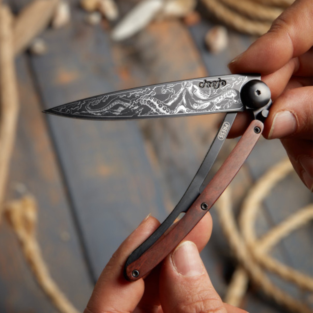 Photo d'un couteau Deejo personnalisé avec le tatouage Pieuvre
