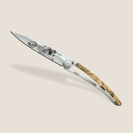 Aber das ist noch nicht alles: Neben seiner hohen Mobilität und Benutzerfreundlichkeit bietet das Deejo Messer zudem die Möglichkeit, „tätowiert“ zu werden – so wie man seine Haut verzieren würde. Sein Messer zu tätowieren bedeutet, diesem bereits sehr persönlichen Objekt eine weitere Dimension zu verleihen: eine wahre Identität.