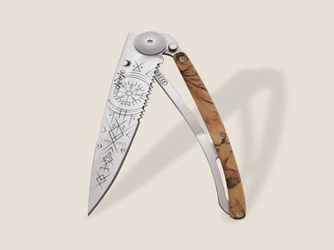 Aber das ist noch nicht alles: Neben seiner hohen Mobilität und Benutzerfreundlichkeit bietet das Deejo Messer zudem die Möglichkeit, „tätowiert“ zu werden – so wie man seine Haut verzieren würde. Sein Messer zu tätowieren bedeutet, diesem bereits sehr persönlichen Objekt eine weitere Dimension zu verleihen: eine wahre Identität.