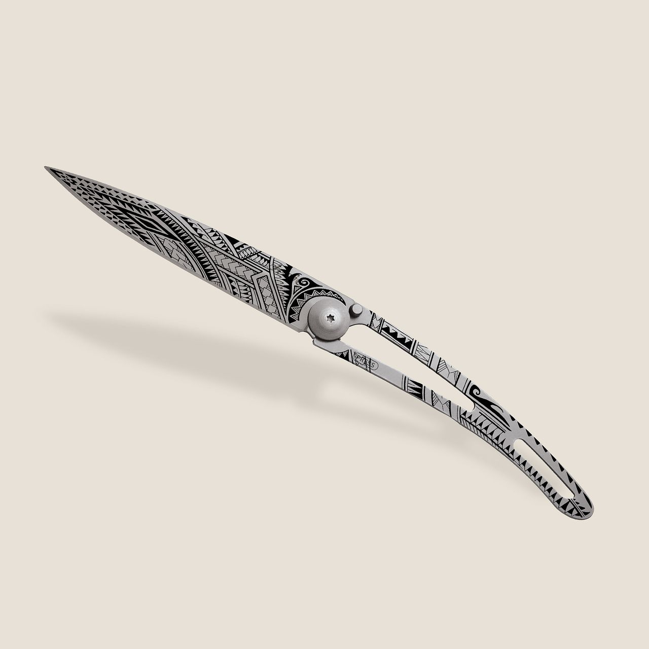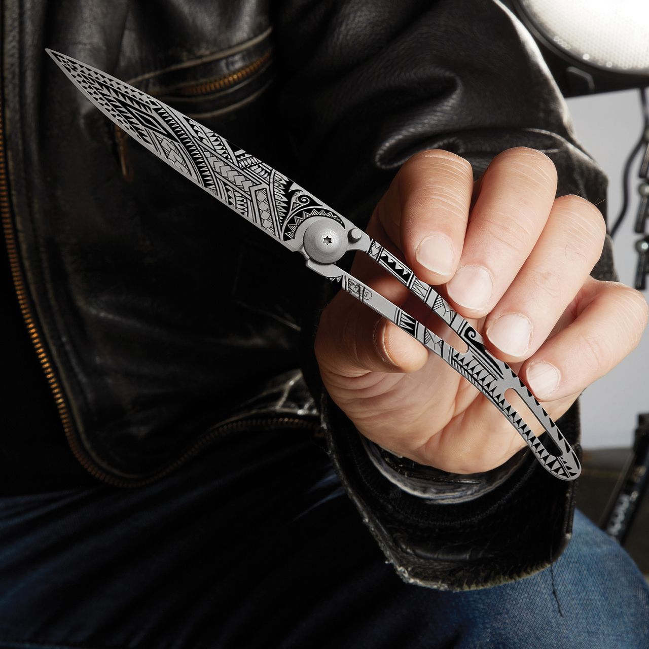 Aber das ist noch nicht alles: Neben seiner hohen Mobilität und Benutzerfreundlichkeit bietet das Deejo Messer zudem die Möglichkeit, „tätowiert“ zu werden – so wie man seine Haut verzieren würde. Sein Messer zu tätowieren bedeutet, diesem bereits sehr persönlichen Objekt eine weitere Dimension zu verleihen: eine wahre Identität.