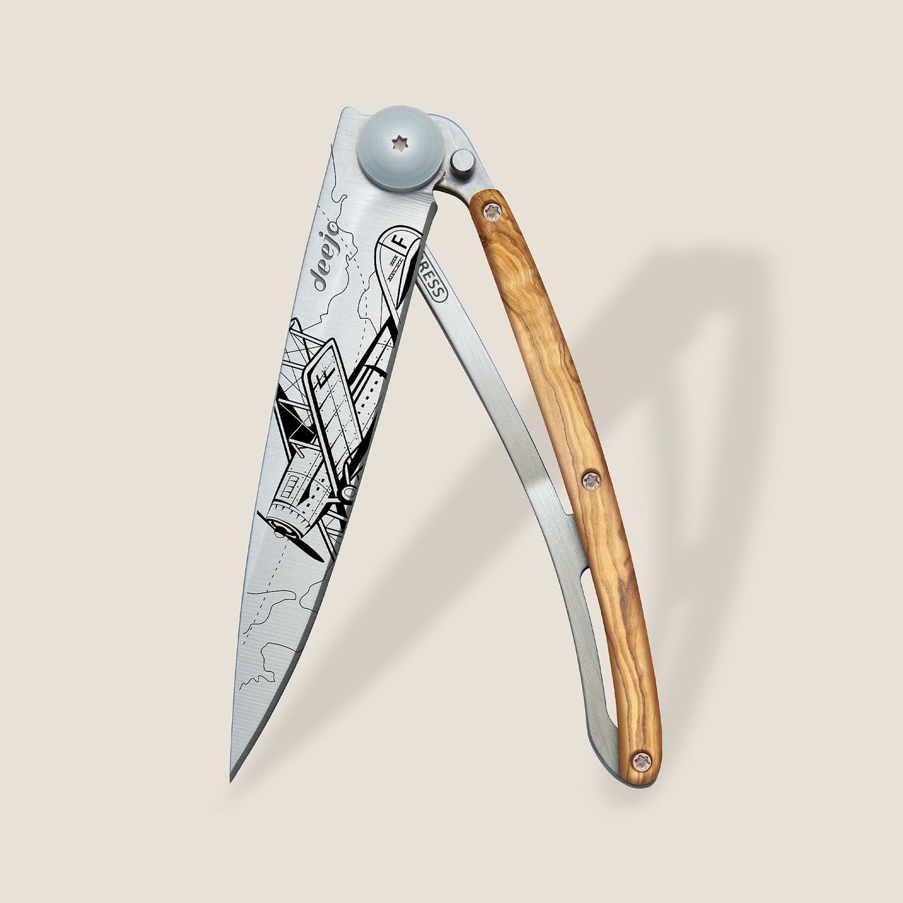 Olivenholz, das den Griff dieses Deejo Messers ziert, ist für seine Robustheit und seine antibakteriellen Eigenschaften bekannt. Es erfreut sich in der Messerschmiedekunst großer Beliebtheit. Jedes Stück ist je nach dem Baum, aus dem es gefertigt wurde, per se ein Unikat, das für seine Ästhetik und seine natürliche Maserung geschätzt wird. Es lässt Ihr Deejo in wunderschönen Beigetönen erstrahlen, denen Feuchtigkeit oder Zeit nichts anhaben können.