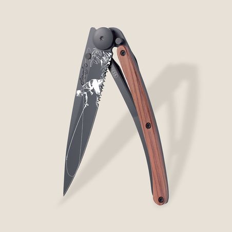 Für echte Flussliebhaber gemacht: Das Deejo mit Fliegenfischen Motiv lässt sich einhändig öffnen und schneidet selbst anspruchsvolles Schnittgut mühelos. Federleicht, präzise und stets bereit. Der perfekte Begleiter für entspannte Pausen am Wasser.