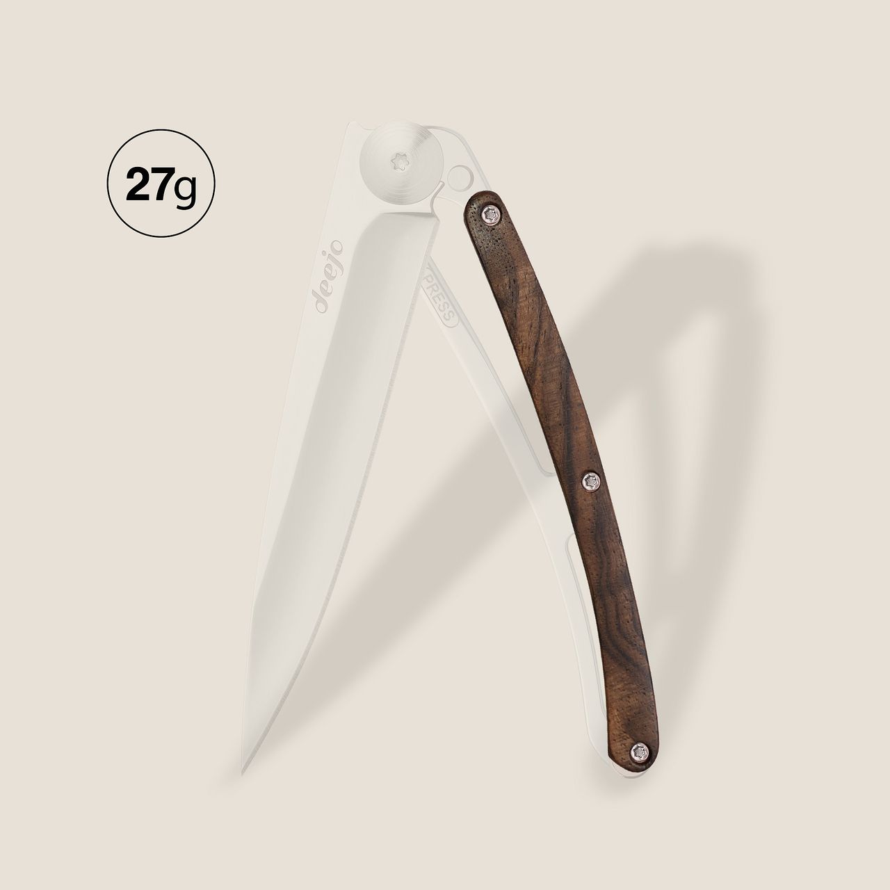 Dieses besondere Holz wird aus einer Wucherung gewonnen, die unten aus dem Baum heraus oder zwischen Astgabelungen wächst. Dieses Holz ist aufgrund seiner ästhetischen Beschaffenheit in der Messerherstellung sehr beliebt, da es kontrastreiche, komplexe und stark ineinander verschlungene Muster vor einem dunklen Hintergrund bietet, das nicht nur die Kenner begeistert.