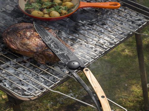 Für Liebhaber schöner Dinge versieht Deejo sein großes Messer mit einem Tattoo zu Ehren des Schweins.