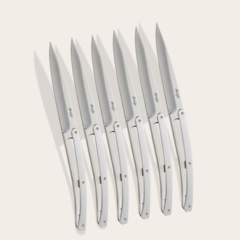 Die Deejo Messer passen sehr gut zu silbernen Gabeln und elegantem Tafelgeschirr.