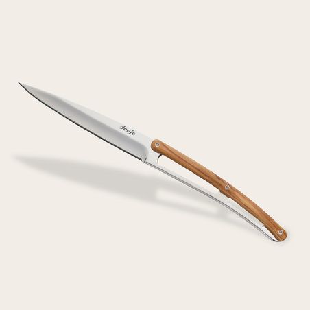 Olivenholz, das den Griff dieser Deejo Messer ziert, ist für seine Robustheit und seine antibakteriellen Eigenschaften bekannt. Es erfreut sich in der Messerschmiedekunst großer Beliebtheit. Jedes Stück ist je nach dem Baum, aus dem es gefertigt wurde, per se ein Unikat, das für seine Ästhetik und seine natürliche Maserung geschätzt wird. Es lässt Ihre Deejo Messer in wunderschönen Beigetönen erstrahlen, denen Feuchtigkeit oder Zeit nichts anhaben können.