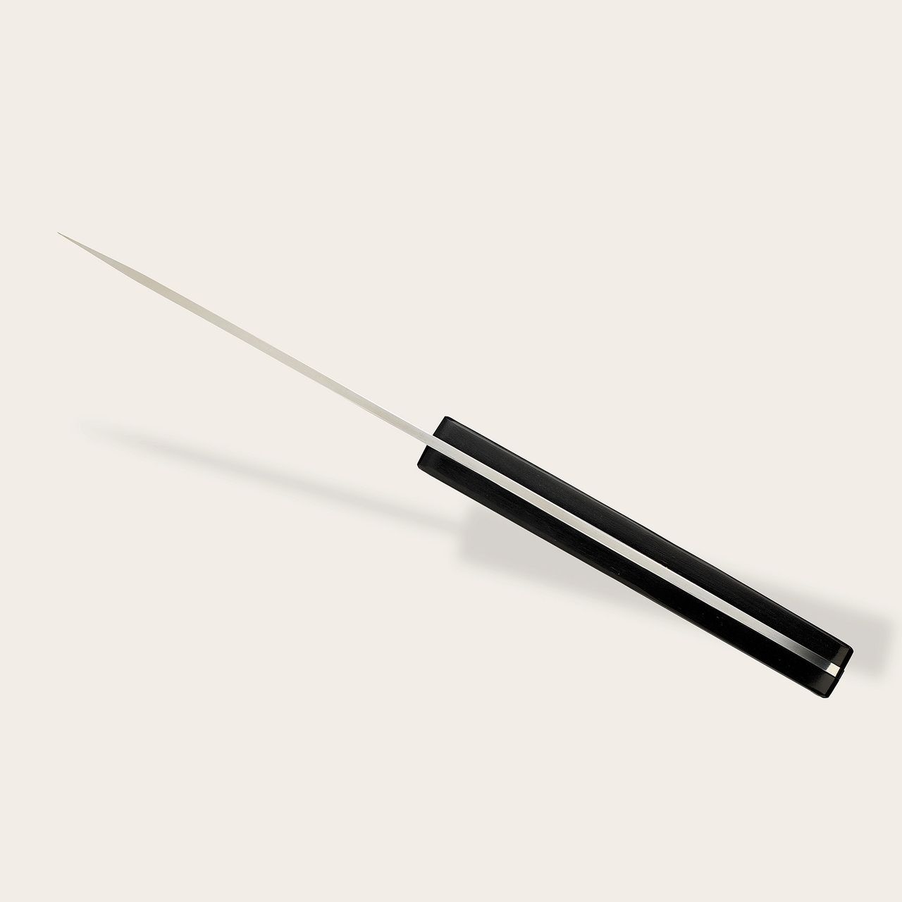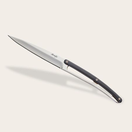Ebenholz, das den Griff dieser Deejo Messer ziert, ist eine wahre Ode an tiefstes Schwarz. Das Besondere an dieser außergewöhnlichen Holzart ist, dass sie praktisch unempfindlich gegenüber Umgebungsfeuchtigkeit ist. Sie ist das dichteste, widerstandsfähigste und wertvollste Material, das es gibt – ideal für diese wunderschönen Messer.