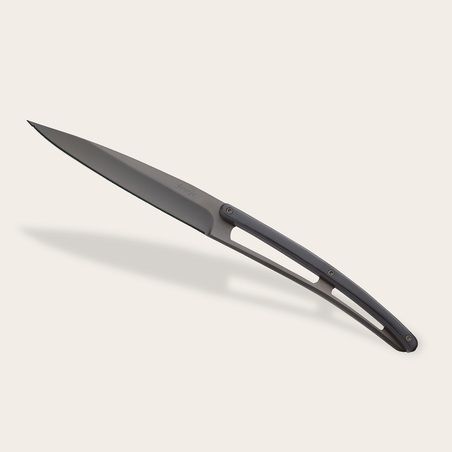Ebenholz, das den Griff dieser Deejo Messer ziert, ist eine wahre Ode an tiefstes Schwarz. Das Besondere an dieser außergewöhnlichen Holzart ist, dass sie praktisch unempfindlich gegenüber Umgebungsfeuchtigkeit ist. Sie ist das dichteste, widerstandsfähigste und wertvollste Material, das es gibt – ideal für diese wunderschönen Messer.