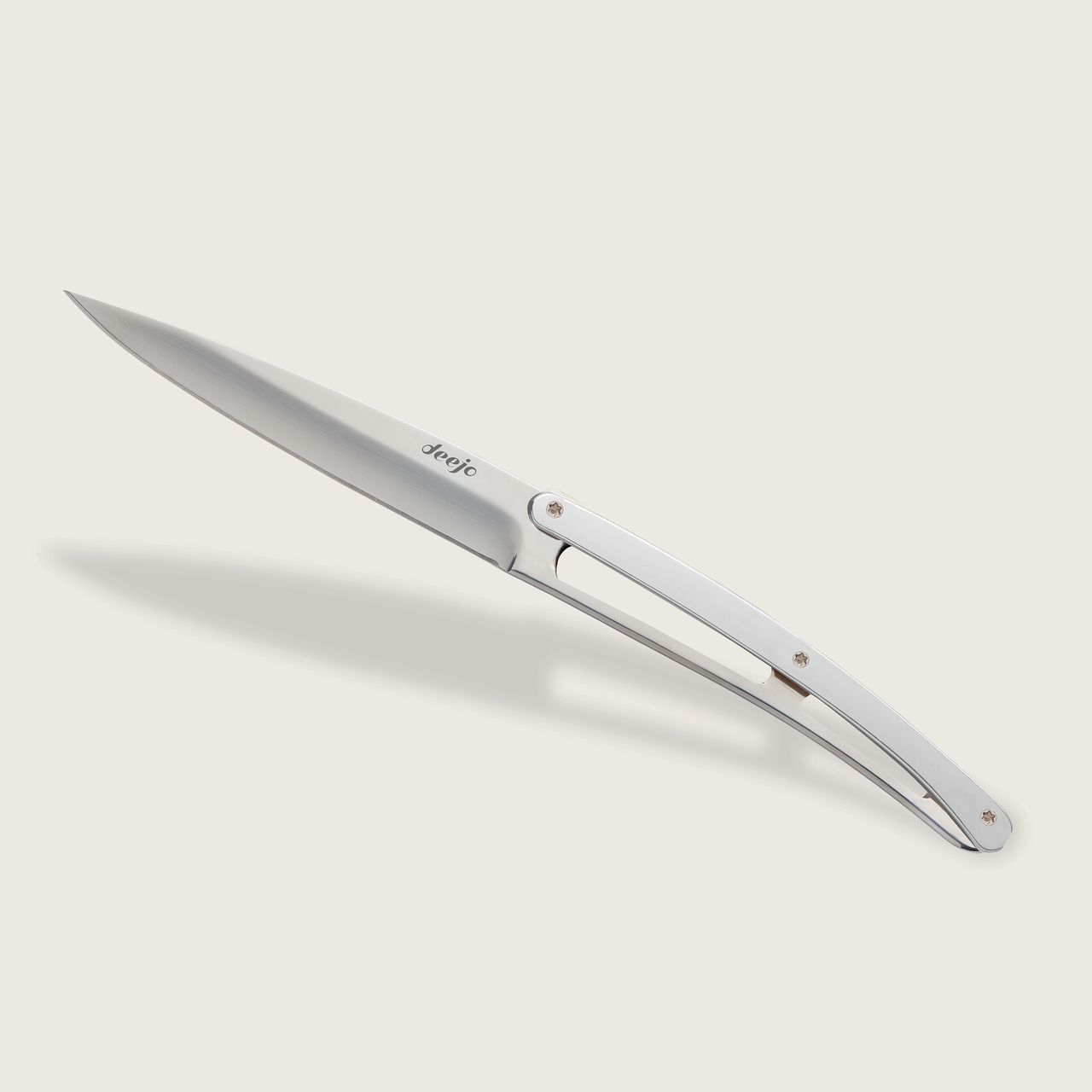 Dieses glänzende Finish, das aus den „Reibungen“ des Edelstahls Ihrer Deejo Messer resultiert, lenkt die Aufmerksamkeit auf die Lichteffekte auf den Reliefs aus poliertem Stahl dieser wunderschönen Schneidwaren. Wie kostbare Schmuckstücke ziehen Ihre Deejo Messer, die in Tausend Tönen funkeln, alle Blicke auf sich.