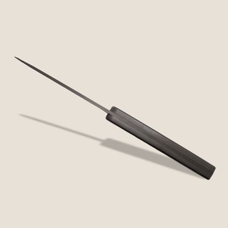 Mit schwarzem Titan auf einer Basis aus Edelstahl bietet dieses Finish gleich zwei Vorteile. Zum einen erhöht es die Widerstandsfähigkeit der Oberfläche gegenüber Stößen und Kratzern. Und zum anderen akzentuiert es die eleganten Linien Ihres Messers mit subtilen mattschwarzen Spiegelungen. Als dezentes Material par excellence setzt Stahl im Laufe der Jahre eine leichte Patina an, die diese wunderschöne Schneidwarenkreation noch attraktiver macht.