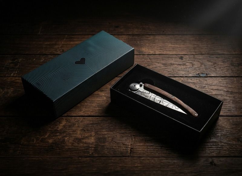 Angebot gültig bis zum 17. Mai 2026 einschließlich und solange der Vorrat reicht. Das "Vatertags-Set" ist gratis mit dem Code BESTDAD26 beim Kauf eines personalisierten Deejo Taschenmessers erhältlich. Box und Schuber werden ohne Messer geliefert. Nicht mit anderen Angeboten kombinierbar.